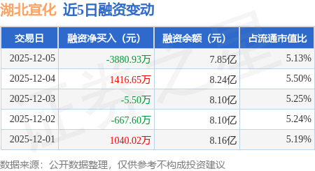 证券之星消息,12月5日,湖北宜化(000422)融资买入3862.37万元,融资偿还7743.31万元,融资净卖出3880.93万元,融资余额7.85亿元。