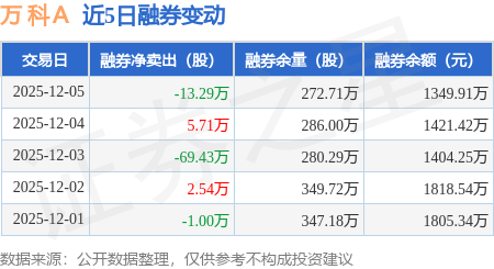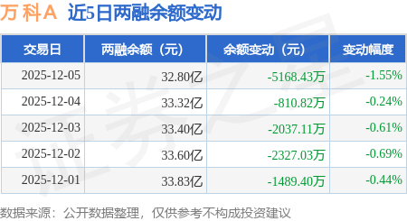 证券之星消息,12月5日,万 科A(000002)融资买入1.7亿元,融资偿还2.21亿元,融资净卖出5096.92万元,融资余额32.66亿元。
