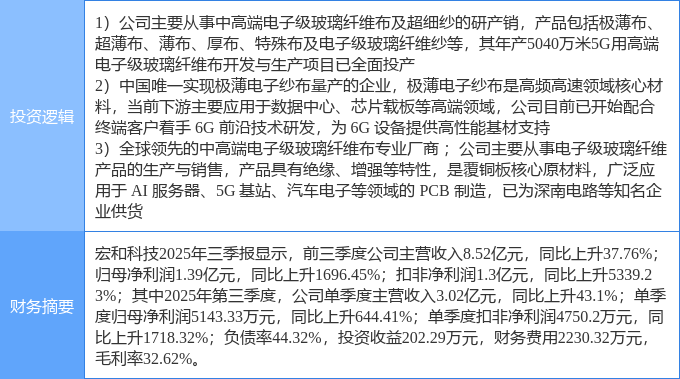 该股为玻纤,PCB板,6G概念热股,当日玻纤概念上涨4.12%,PCB板概念上涨2.94%,6G概念上涨2.82%。