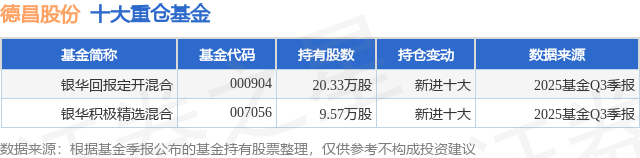 重仓德昌股份的公募基金请见下表: