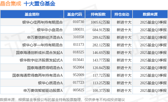 根据2025基金Q3季报公募基金重仓股数据,重仓该股的公募基金共42家,其中持有数量最多的公募基金为银华基金的银华心佳两年持有期混合。银华心佳两年持有期混合目前规模为67.16亿元,最新净值0.9326(12月5日),较上一交易日上涨0.54%,近一年上涨46.59%。该公募基金现任基金经理为李晓星 张腾 杜宇。张腾在任的基金产品包括:银华瑞和灵活配置混合A,管理时间为2024年3月7日至今,期间收益率为55.31%;银华甄选价值成长混合A,管理时间为2024年8月7日至今,期间收益率为45.08%;银华甄选价值回报混合A,管理时间为2025年9月18日至今,期间收益率为3.26%。李晓星在任的基金产品包括:银华中小盘混合,管理时间为2015年7月7日至今,期间收益率为231.01%;银华盛世精选灵活配置混合发起式A,管理时间为2016年12月22日至今,期间收益率为124.02%;银华心诚灵活配置混合A,管理时间为2018年3月12日至今,期间收益率为86.5%;银华心怡灵活配置混合A,管理时间为2018年7月5日至今,期间收益率为239.87%。杜宇在任的基金产品包括:银华中小盘混合,管理时间为2019年12月11日至今,期间收益率为74.97%;银华丰享一年持有期混合,管理时间为2022年1月26日至今,期间收益率为1.6%;银华心质混合A,管理时间为2023年3月30日至今,期间收益率为21.94%;