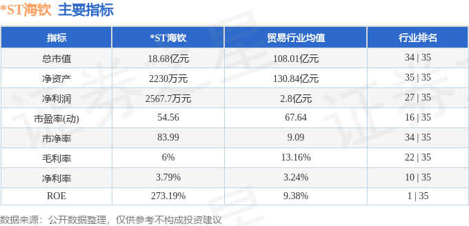 *ST海钦2025年三季报显示,前三季度公司主营收入6.77亿元,同比上升188.11%;归母净利润2567.7万元,同比上升135.64%;扣非净利润1953.12万元,同比上升127.89%;其中2025年第三季度,公司单季度主营收入3.52亿元,同比上升1780.55%;单季度归母净利润1820.83万元,同比上升151.36%;单季度扣非净利润1436.81万元,同比上升142.07%;负债率92.11%,投资收益0.53万元,财务费用207.48万元,毛利率6.0%。*ST海钦(600753)主营业务:大宗商品供应链业务。