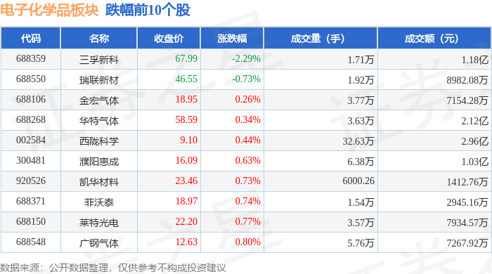 从资金流向上来看,当日电子化学品板块主力资金净流入1.83亿元,游资资金净流出1.56亿元,散户资金净流出2695.94万元。电子化学品板块个股资金流向见下表: