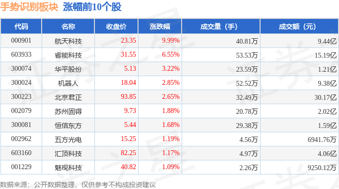 从资金流向上来看,当日手势识别板块主力资金净流入1.32亿元,游资资金净流出79.26万元,散户资金净流出1.31亿元。手势识别板块个股资金流向见下表: