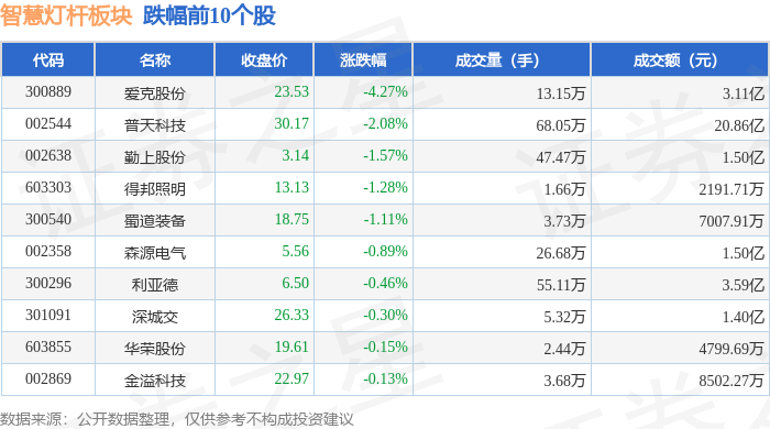 从资金流向上来看,当日智慧灯杆板块主力资金净流出2.5亿元,游资资金净流出5861.48万元,散户资金净流入3.08亿元。智慧灯杆板块个股资金流向见下表:
