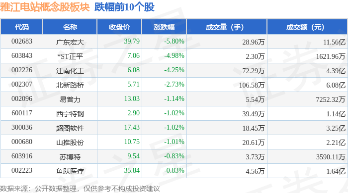 从资金流向上来看,当日雅江电站概念股板块主力资金净流出11.02亿元,游资资金净流入1.74亿元,散户资金净流入9.28亿元。雅江电站概念股板块个股资金流向见下表: