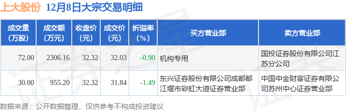 证券之星消息,12月8日上大股份发生大宗交易,交易数据如下: