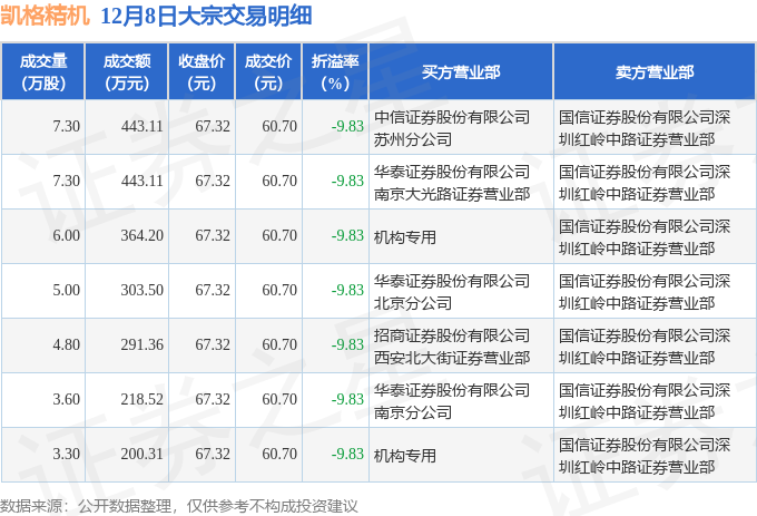 证券之星消息,12月8日凯格精机发生大宗交易,交易数据如下: