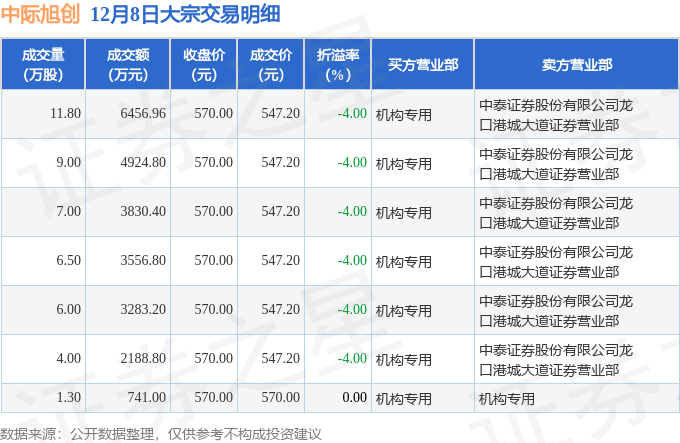 证券之星消息,12月8日中际旭创发生大宗交易,交易数据如下:
