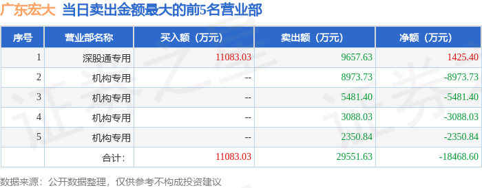 证券之星消息,沪深交易所2025年12月8日公布的交易公开信息显示,广东宏大(002683)因日跌幅偏离值达到7%的前5只证券登上龙虎榜。此次是近5个交易日内第1次上榜。
