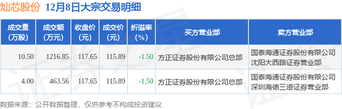 证券之星消息,12月8日灿芯股份发生大宗交易,交易数据如下: