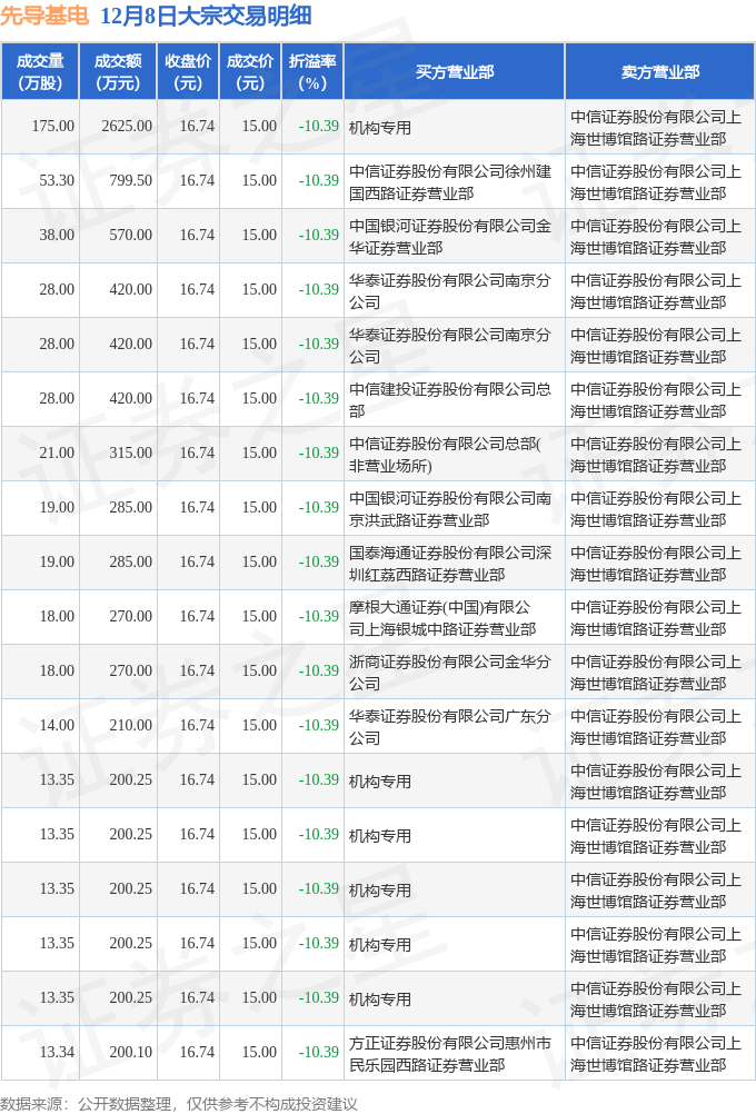 证券之星消息,12月8日先导基电发生大宗交易,交易数据如下: