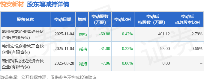 截至2025年12月8日收盘,悦安新材(688786)报收于27.9元,上涨2.01%,换手率1.01%,成交量1.45万手,成交额4042.95万元。