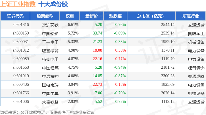 证券之星消息,12月8日,上证工业(000034)指数报收于2213.63点,跌0.15%,成交318.64亿元,换手率0.54%。当日该指数成份股中,上涨的有21家,中国东航以2.35%的涨幅领涨,下跌的有25家,宇通客车以2.06%的跌幅领跌。