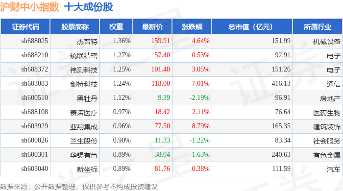 沪财中小(000091)指数十大成份股详情如下: