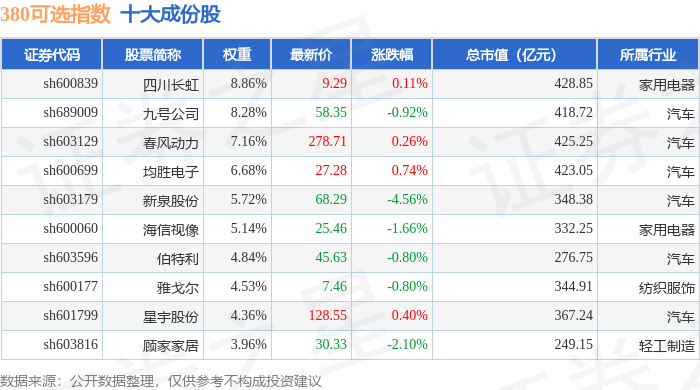 证券之星消息,12月8日,380可选(000107)指数报收于5618.31点,跌0.2%,成交107.89亿元,换手率1.01%。当日该指数成份股中,上涨的有11家,瑞可达以20.0%的涨幅领涨,下跌的有22家,新泉股份以4.56%的跌幅领跌。