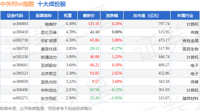 资金流向方面,中关村60(399697)指数成份股当日主力资金净流出合计4.77亿元,游资资金净流入合计5.55亿元,散户资金净流出合计7753.26万元。成份股资金流向详情见下表:
