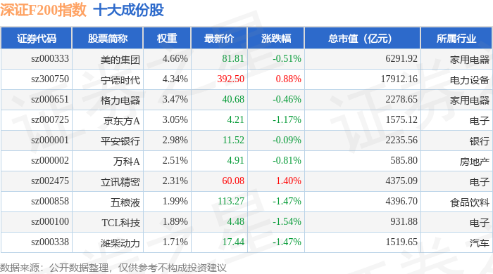 深证F200(399703)指数十大成份股详情如下:
