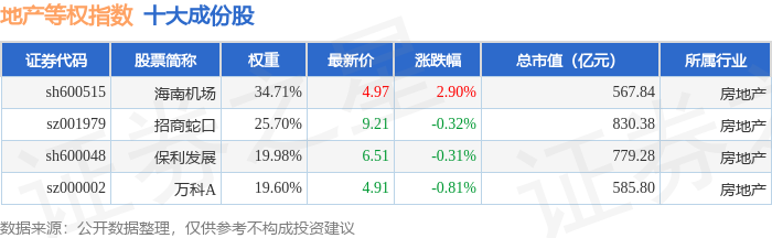 地产等权(399983)指数十大成份股详情如下: