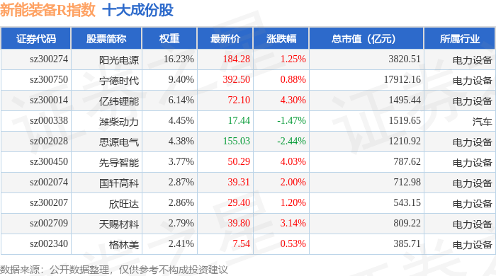 新能装备R(470043)指数十大成份股详情如下: