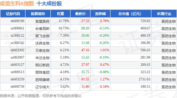 近10日内疫苗生科R(480015)指数成份股做了调整,新纳入了2只股票。