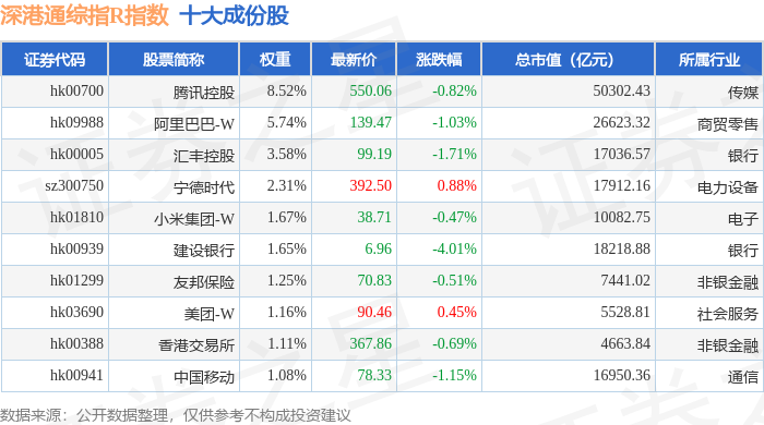 资金流向方面,深港通综指R(483005)指数成份股当日主力资金净流入合计28.88亿元,游资资金净流出合计42.06亿元,散户资金净流入合计13.18亿元。成份股资金流向详情见下表:
