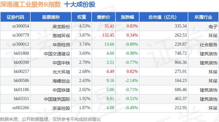 深港通工业服务R(483055)指数十大成份股详情如下: