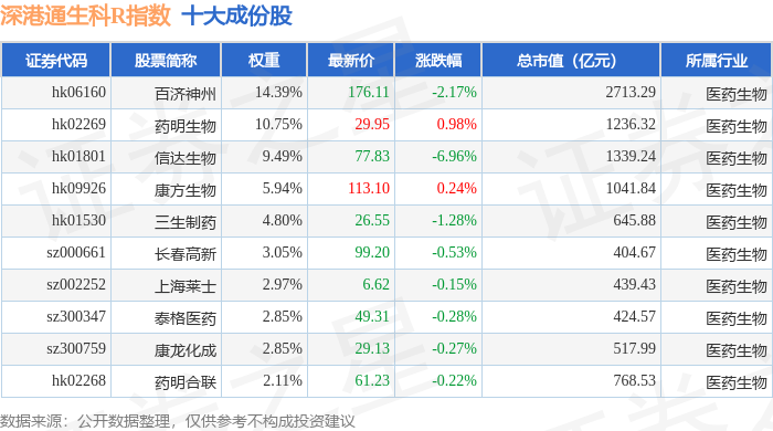 深港通生科R(483059)指数十大成份股详情如下: