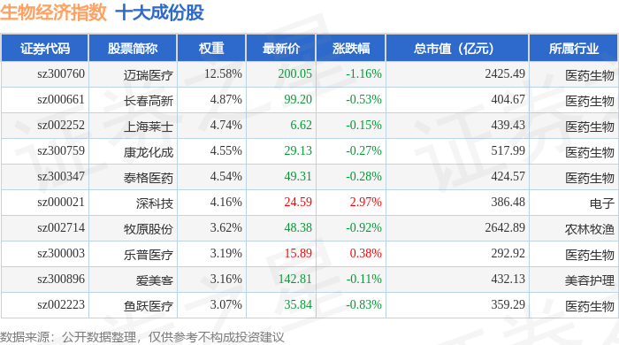 证券之星消息,12月8日,生物经济(970038)指数报收于2128.92点,跌0.19%,成交121.13亿元,换手率0.9%。当日该指数成份股中,上涨的有17家,深科技以2.97%的涨幅领涨,下跌的有31家,派林生物以1.77%的跌幅领跌。