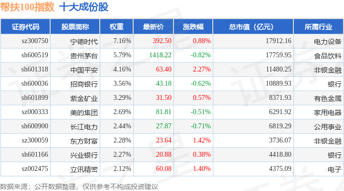 帮扶100(980065)指数十大成份股详情如下: