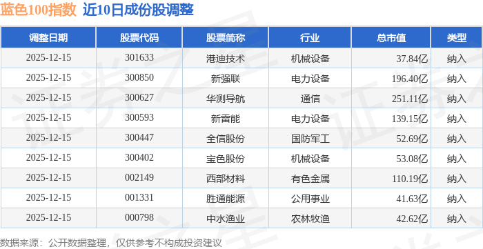 近10日内蓝色100(980068)指数成份股做了调整,新纳入了9只股票。