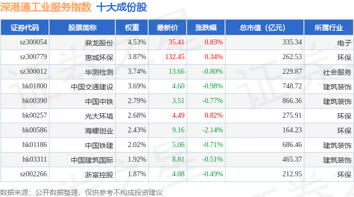 证券之星消息,12月8日,深港通工业服务(983055)指数报收于2227.37点,涨0.28%,成交175.01亿元,换手率1.47%。当日该指数成份股中,上涨的有38家,汇绿生态以10.03%的涨幅领涨,下跌的有55家,至源控股以2.78%的跌幅领跌。