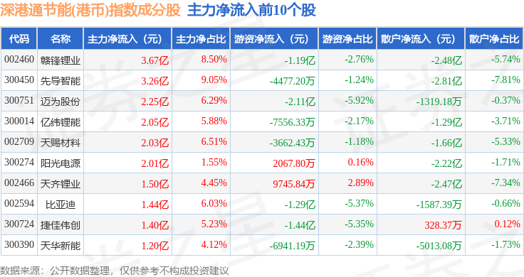 资金流向方面,深港通节能(港币)(983086)指数成份股当日主力资金净流入合计23.09亿元,游资资金净流出合计7.67亿元,散户资金净流出合计15.41亿元。成份股资金流向详情见下表: