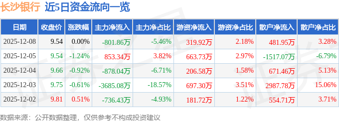 证券之星消息,截至2025年12月8日收盘,长沙银行(601577)报收于9.54元,上涨0.0%,换手率0.38%,成交量15.38万手,成交额1.47亿元。