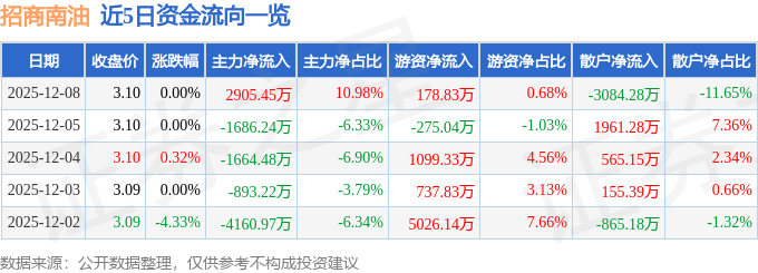 证券之星消息,截至2025年12月8日收盘,招商南油(601975)报收于3.1元,上涨0.0%,换手率1.78%,成交量85.7万手,成交额2.65亿元。