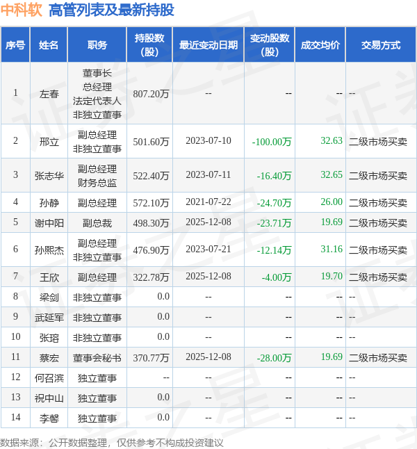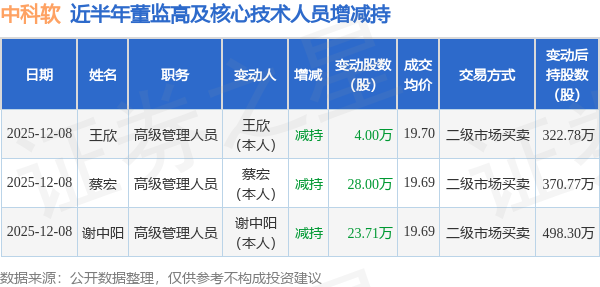 中科软近半年内的董监高及核心技术人员增减持详情如下: