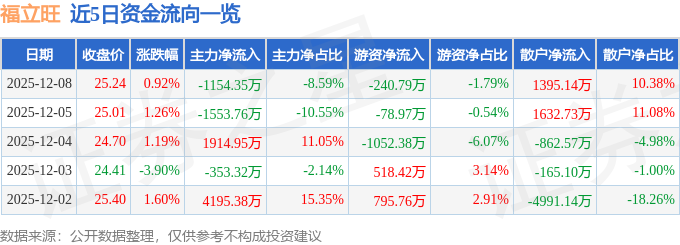 证券之星消息,截至2025年12月8日收盘,福立旺(688678)报收于25.24元,上涨0.92%,换手率2.06%,成交量5.35万手,成交额1.34亿元。