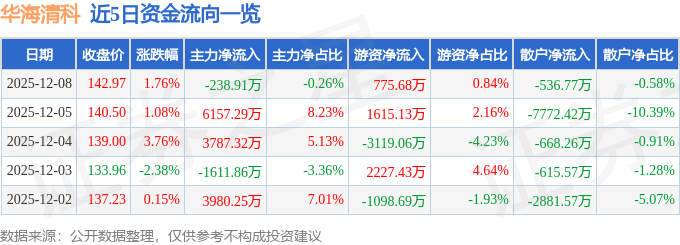 证券之星消息,截至2025年12月8日收盘,华海清科(688120)报收于142.97元,上涨1.76%,换手率1.83%,成交量6.46万手,成交额9.2亿元。