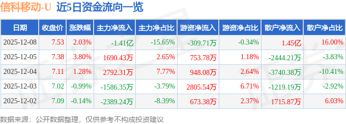 证券之星消息,截至2025年12月8日收盘,信科移动(688387)报收于7.53元,上涨2.03%,换手率5.86%,成交量118.27万手,成交额9.03亿元。