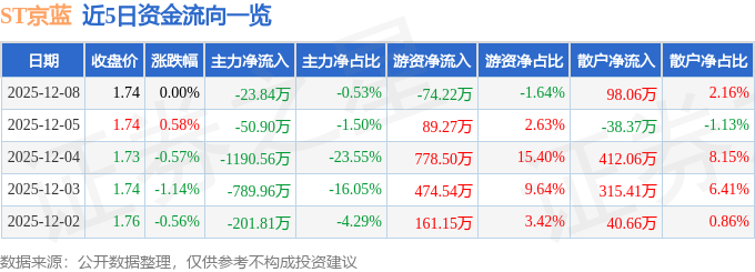 证券之星消息,截至2025年12月8日收盘,ST京蓝(000711)报收于1.74元,上涨0.0%,换手率1.14%,成交量26.09万手,成交额4536.21万元。