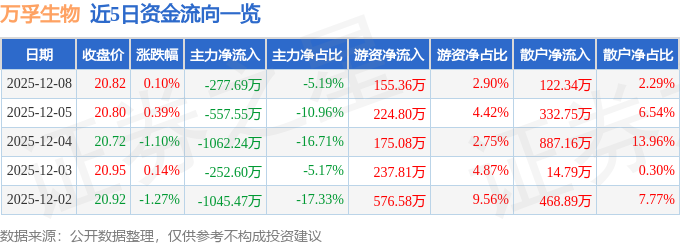 证券之星消息,截至2025年12月8日收盘,万孚生物(300482)报收于20.82元,上涨0.1%,换手率0.6%,成交量2.57万手,成交额5353.17万元。