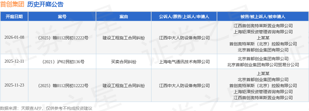 证券之星消息,根据天眼查APP显示,近日公布了一则北京首都创业集团有限公司作为被告/被上诉人的开庭公告,详细内容如下: