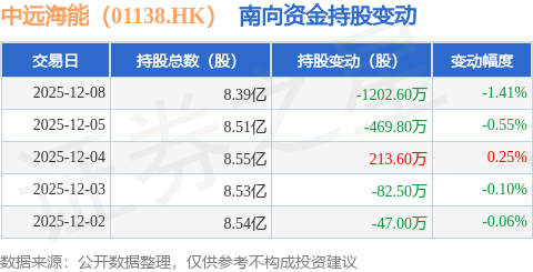 证券之星消息,12月8日南向资金减持1202.6万股中远海能(01138.HK)。近5个交易日中,获南向资金减持的有4天,累计净减持1588.3万股。近20个交易日中,获南向资金减持的有16天,累计净减持5722.88万股。截至目前,南向资金持有中远海能(01138.HK)8.39亿股,占公司已发行普通股的64.7%。