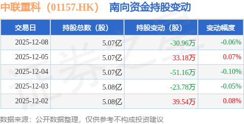 证券之星消息,12月8日南向资金减持30.96万股中联重科(01157.HK)。近5个交易日中,获南向资金减持的有3天,累计净减持33.18万股。近20个交易日中,获南向资金增持的有12天,累计净增持474.08万股。截至目前,南向资金持有中联重科(01157.HK)5.07亿股,占公司已发行普通股的32.65%。