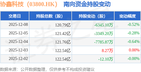 证券之星消息,12月8日南向资金减持6345.1万股协鑫科技(03800.HK)。近5个交易日中,获南向资金减持的有4天,累计净减持1.75亿股。近20个交易日中,获南向资金增持的有10天,累计净增持1.11亿股。截至目前,南向资金持有协鑫科技(03800.HK)120.79亿股,占公司已发行普通股的36.35%。