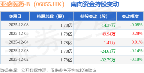 证券之星消息,12月8日南向资金减持14.37万股亚盛医药-B(06855.HK)。近5个交易日中,获南向资金减持的有3天,累计净减持20.42万股。近20个交易日中,获南向资金减持的有15天,累计净减持278.41万股。截至目前,南向资金持有亚盛医药-B(06855.HK)1.78亿股,占公司已发行普通股的47.66%。