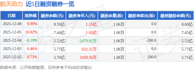 证券之星消息,截至2025年12月8日收盘,航天动力(600343)报收于31.04元,上涨9.99%,已连续涨停2天,换手率19.92%,成交量127.11万手,成交额38.99亿元。