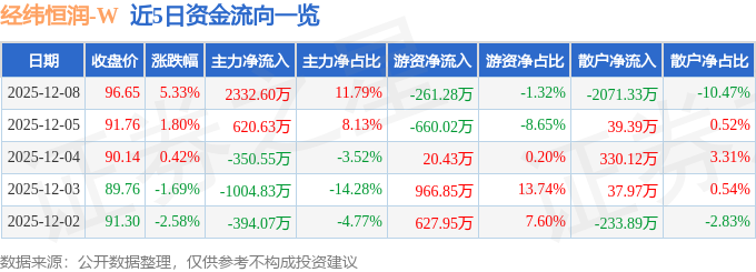 证券之星消息,截至2025年12月8日收盘,经纬恒润(688326)报收于96.65元,上涨5.33%,换手率1.85%,成交量2.07万手,成交额1.98亿元。