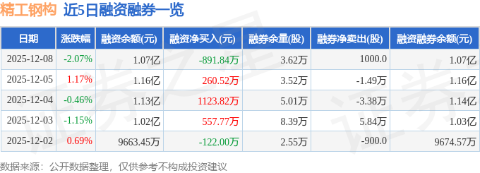 精工钢构融资融券信息显示,融资方面,当日融资买入724.0万元,融资偿还1615.84万元,融资净偿还891.84万元。融券方面,融券卖出3000.0股,融券偿还2000.0股,融券余量3.62万股,融券余额15.38万元。融资融券余额1.07亿元。