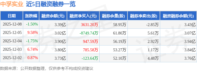 证券之星消息,截至2025年12月8日收盘,中孚实业(600595)报收于7.89元,下跌1.5%,换手率3.41%,成交量136.77万手,成交额10.72亿元。